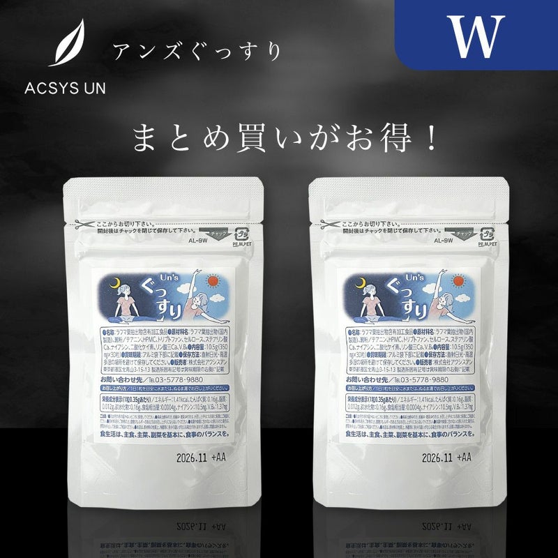 そんな睡眠でお悩みの方の睡眠の質(眠りの深さ・起床時の睡眠に対する満足感)をサポートするために開発された商品が「Un'sぐっすり」です。