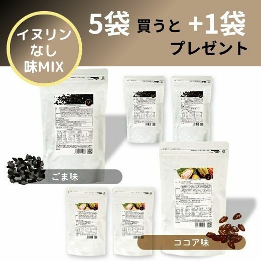 ボディケア食物繊維なしタイプが5個分のお値段で6個買える!(1個無料でプレゼント) ココア味のイヌリンなしとごま味のイヌリンなしが3つずつ入っています。 胃腸が弱い方や、食物繊維が入っているとお腹が張ったりゴロゴロしてしまうという方におすすめ! 味は通常盤と変わりません。