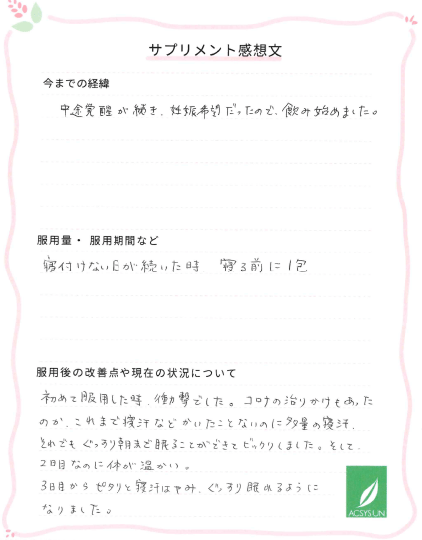 3日目からピタリと寝汗はやみ、ぐっすり眠れるようになりました。