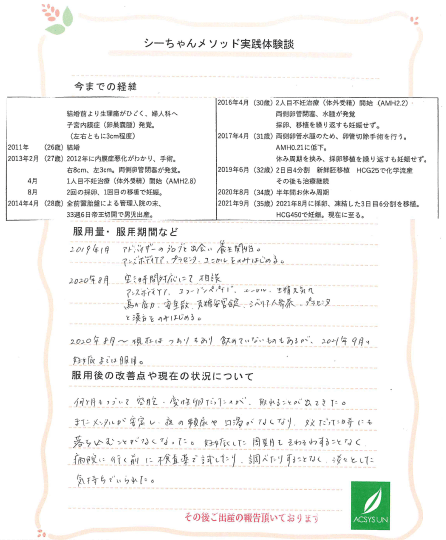 結婚前より生理痛がひどく、婦人科へ 子宮内膜症(卵巣嚢腫)発覚。(左右ともに3㎝程度)
