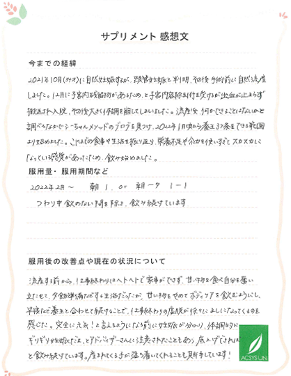 完全に元気!と言えるようになる前に妊娠が分かり、体調的にギリギリ妊娠だよと、アドバイザーさんに注意されたこともあり、底上げできればと飲み続けています。