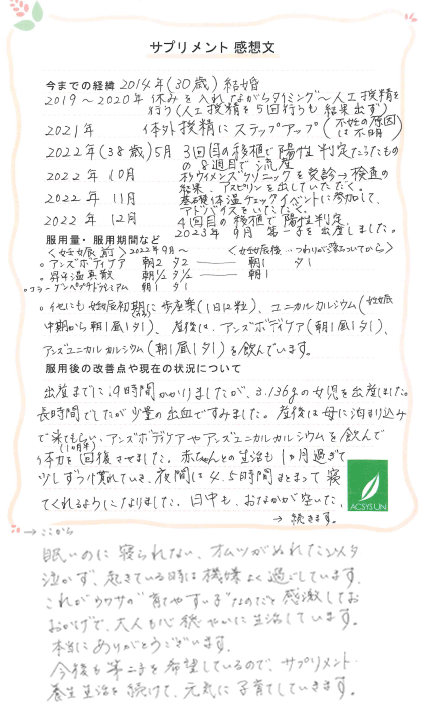 今後も第二子を希望しているので、サプリメントや養生生活を続けて、元気に子育てしていきます。