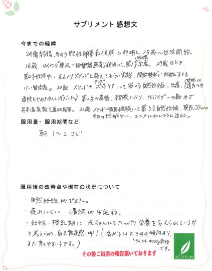 32歳 メソッド+服用継続にて第3子自然妊娠、現在37w。