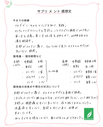旦那は、関節痛もすぐに良くなり、咳も残りませんでした。