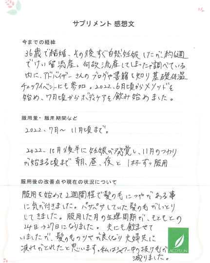 2022.6月頃からメソッドを始め、7月頃からボディケアを飲み始めました。