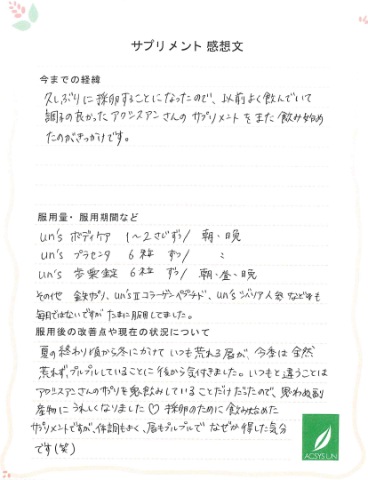 いつもと違うことはアクシスアンさんのサプリを鬼飲みしていることだけだったので、思わぬ副産物にうれしくなりました。