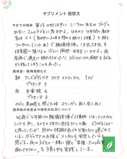 第1子の妊活中にしーちゃん先生のブログと出会い 2人の子どもに恵まれる。