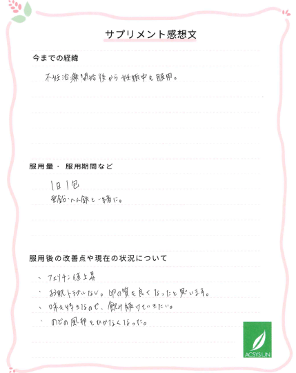 ・お肌トラブルなし。卵の質も良くなったと思います。