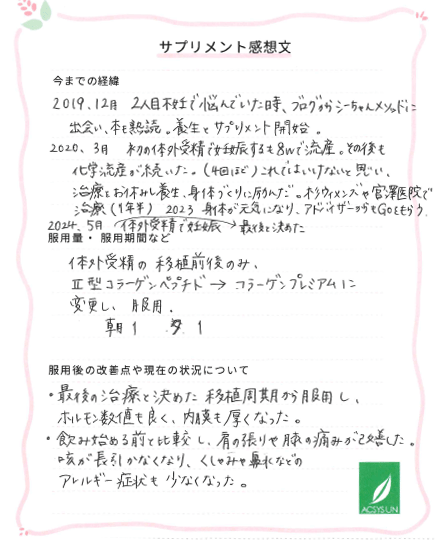 体外受精の移植前後のみ、Ⅱ型コラーゲンペプチド→コラーゲンプレミアムに変更し、服用 朝1ー夕1