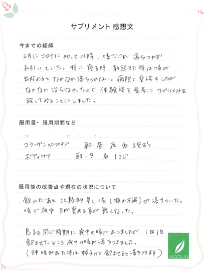 病院で受診もしたが なかなか治らなかったので 体験談を参考にサプリメントを試してみることにしました。