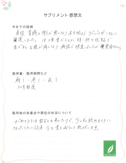 産後、胃腸の調子が悪くなり 本を読んでアドバイザーさんに相談しました。