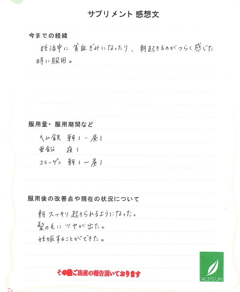 妊活中に貧血ぎみになったり、朝起きるのがつらく感じた時に服用。