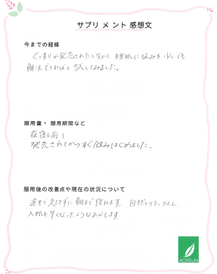 ぐっすりが発売されたと知り、睡眠に悩みを少しでも解決できればと試してみました。