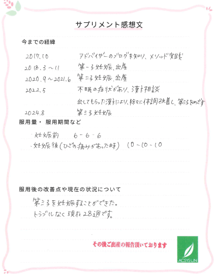 ・妊娠後(ひざの痛みがあった時) 10-10-10