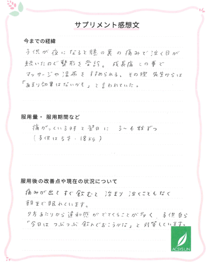 子供が夜になると 膝の裏の痛みで泣く日が続いていたので 整形を受診。