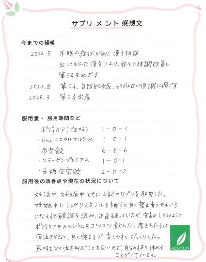 2022.5 不眠の症状があり、漢方相談 出してもらった漢方により、徐々に体調改善し第三子めざす