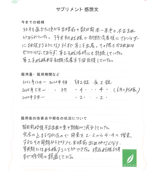 第2子妊娠中は初期流産を3回反復していた。