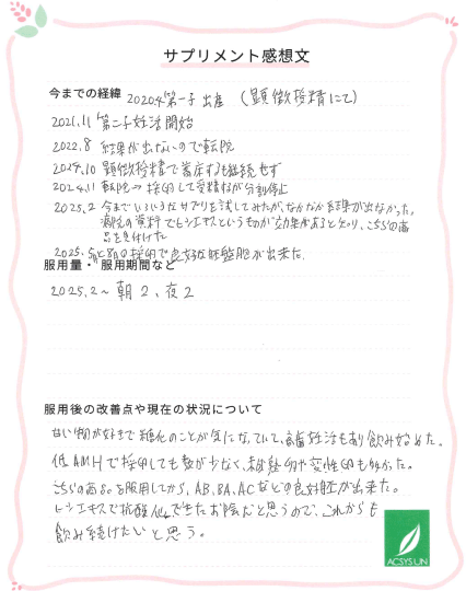 こちらの商品を服用してえから、AB、BA、ACなどの良好胚が出来た。