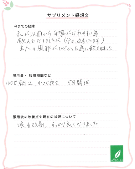 私が以前から卵巣がはれやすい為 飲んでおりましたが(今は、改善しています)主人の風邪がひどかった為に飲ませました。