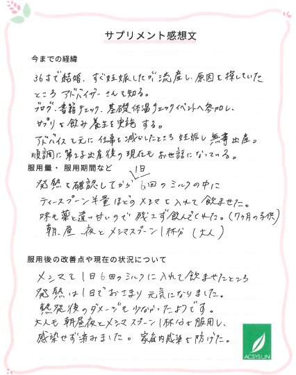 大人も朝昼夜とメシマスプーン1杯分を服用し、感染せず済みました。
