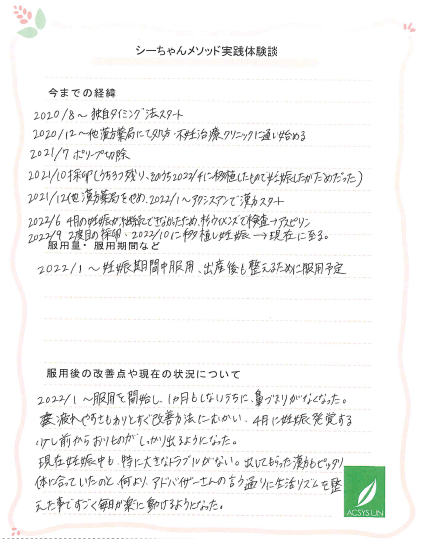 2022/1~妊娠期間中服用、出産後も整えるために服用予定