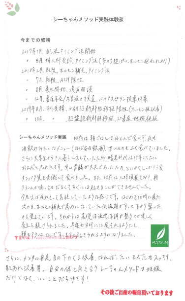 それからは基礎体温や体調が整うのが楽しく養生を続けられました。
