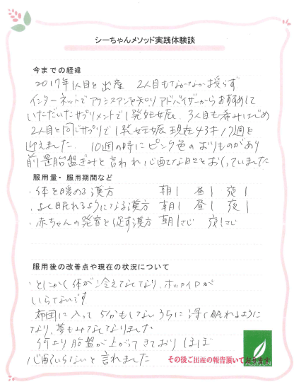 2017年 1人目を出産 2人目もなかなか授らずインターネットでアクシスアンを知り アドバイザーからおすすめしていただいたサプリメントで1発妊娠。
