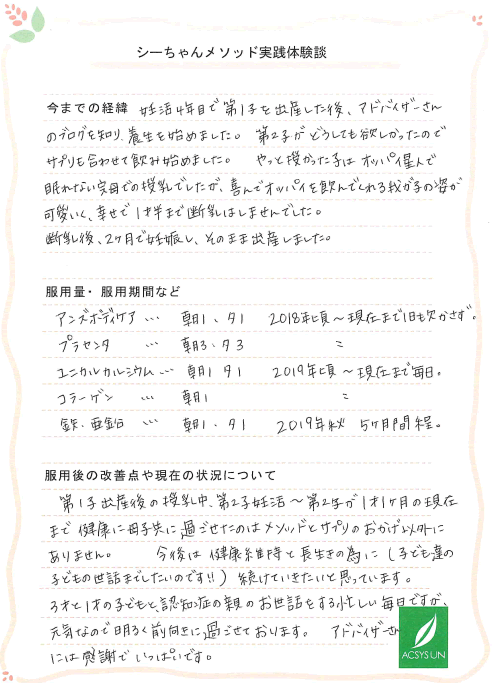 第2子がどうしても欲しかったのでサプリも合わせて飲み始めました。