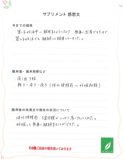 第1子妊活中に服用するようになり、無事に出産できたので 第2子妊活でも継続して服用していました。