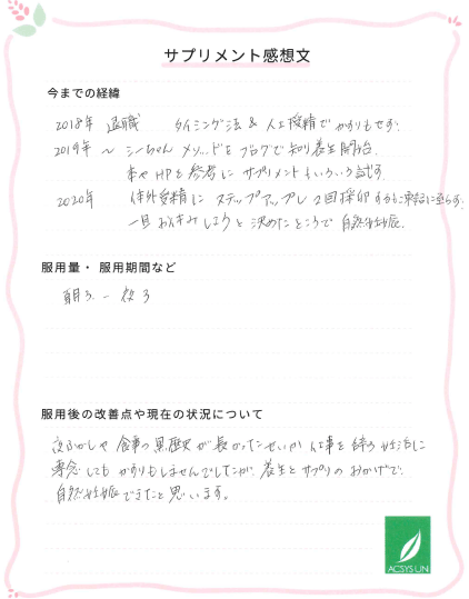 夜ふかしや食事の黒歴史が長かったせいか 仕事を辞め 妊活に専念しても かすりもしませんでしたが、養生とサプリのおかげで自然妊娠できたと思います。