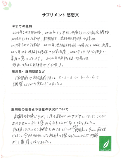 移植はホルモン補充もありましたが、いつも内膜は9mm前後でした。