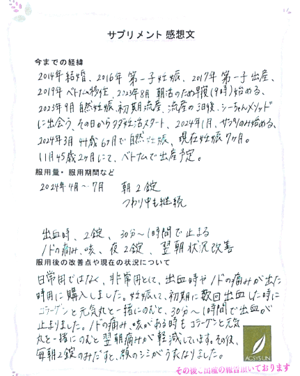 現在妊娠7ヶ月。11月45歳2ヶ月にてベトナムで出産予定。