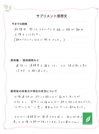 ちなみに清輝泉が発売される前に、同じ状態で負った火傷は跡が残っています。