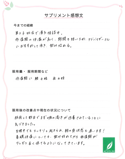 低温期の体温が高く、期間も短いため、アドバイザーさんにおすすめして頂き、飲み始める。