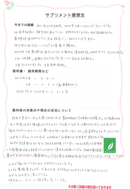 2024年1月 基礎体温チェックイベント参加し漢方相談。AMH 1.21、フェリチン21.7。