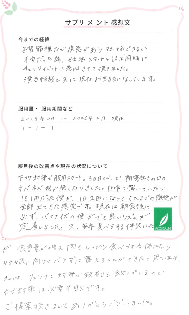 又、長年 夏バテする体質でしたが、食事量が増え肉もしっかり食べられる体になり 妊娠に向けてバテずに蓄えることができたと思います。