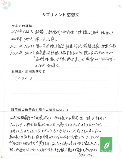 2022年(41才)再度第二子妊娠目指すもなかなか授からず、アメブロで「基礎体温」や「高齢出産」で検索してアドバイザーのブログに到り着く。