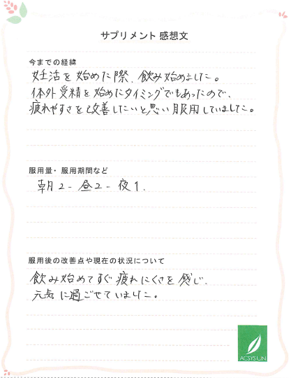 体外受精を始めたタイミングでもあったので、疲れやすさを改善したいと思い服用していました。