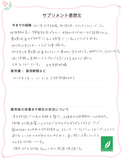 漢方相談で1ヵ月は不眠を整え、2ヶ月から排卵期にのみ始めた。
